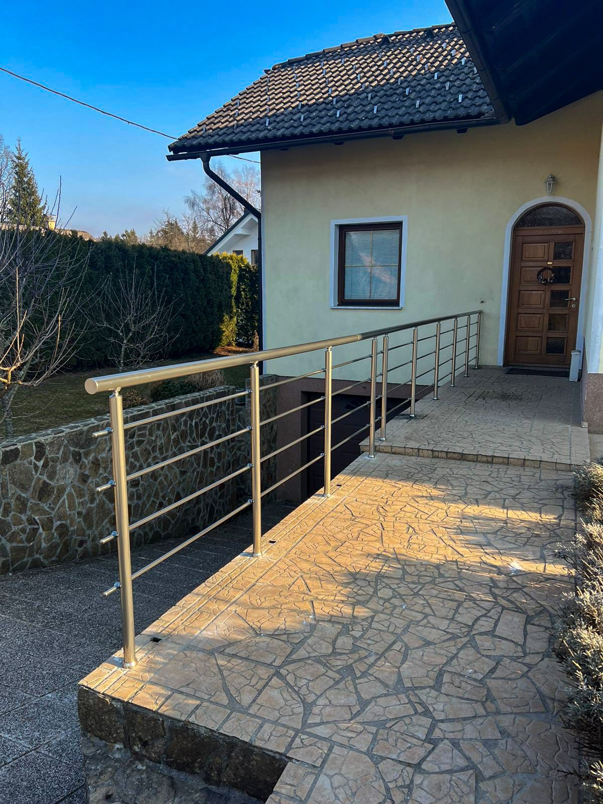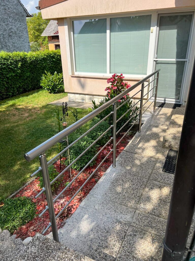 Prednost naših dvoriščnih ograje je prilagodljiva in hitra montaža, na ograji se ne poznajo odtisi prstov in rok, ograje ne zahtevajo nobenega vzdrževanja (poliranja, barvanja). Material ne rjavi in ne spreminja barve, tako da je taka dvoriščna ograja dolgoročna in nezahtevna rešitev ograditve vašega dvorišča.